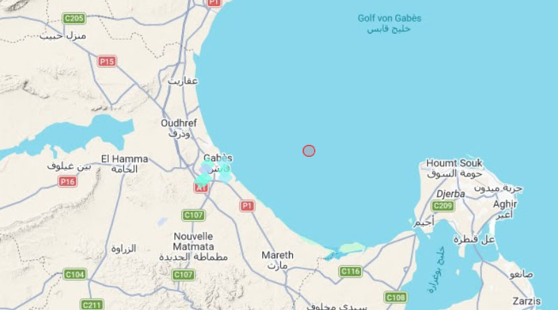 Das Epizentrum des zweiten Bebens lag 5 km östlich von Teboulba, Gabès Süd.