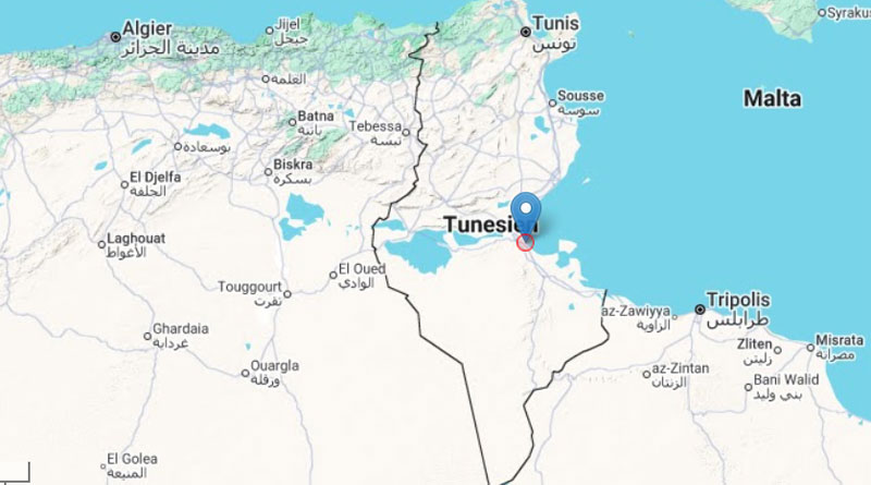 Das Epizentrum des zweiten Bebens lag 5 km östlich von Teboulba, Gabès Süd.